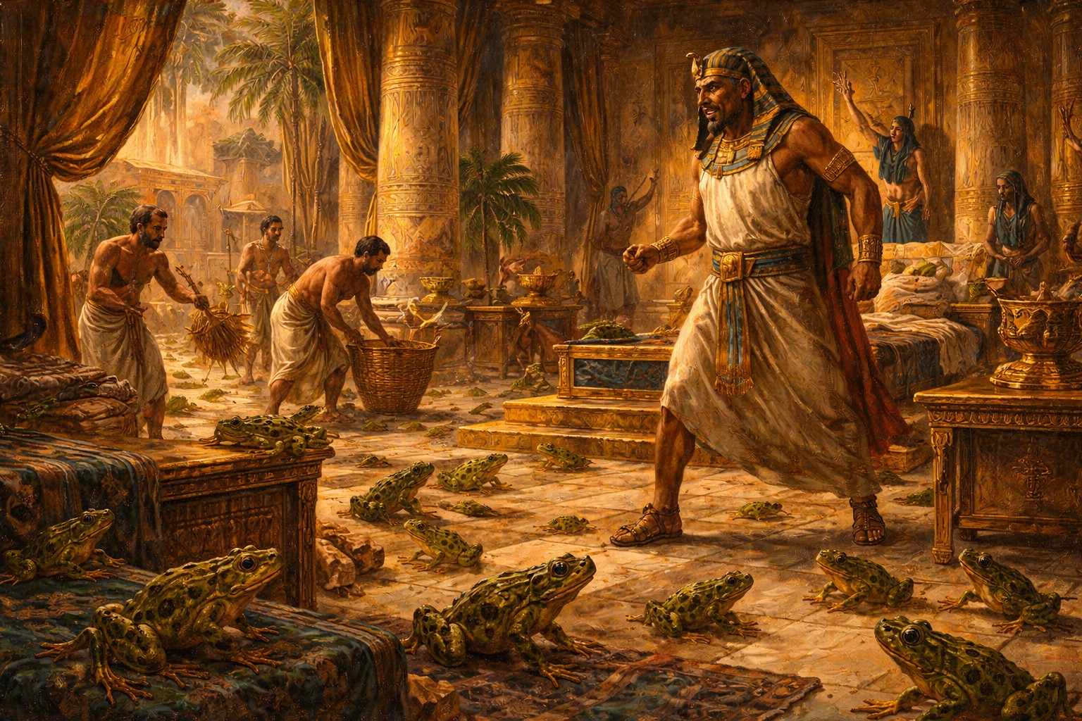 Exodus 8 reveals how God confronts Egypt through the plagues of frogs and gnats, exposing the powerlessness of idols while Pharaoh hardens his heart against the Lord. Exodus 8 records the second and third plagues that God sends upon Egypt, demonstrating His authority over creation and exposing the futility of Egypt’s gods. As frogs fill… Continue reading Exodus 8 — The Plagues of Frogs and Gnats | God’s Power and Pharaoh’s Hardened Heart