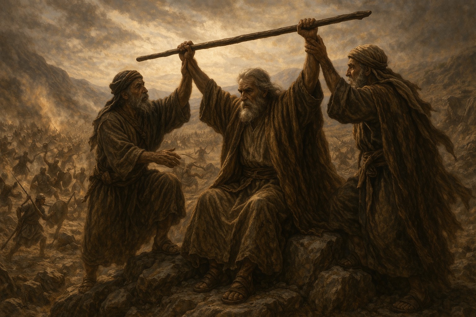 Soon after, Israel faces a new challenge—a battle against Amalek. During the fight, something unusual happens: when Moses raises his hands, Israel prevails; when he lowers them, they begin to lose.