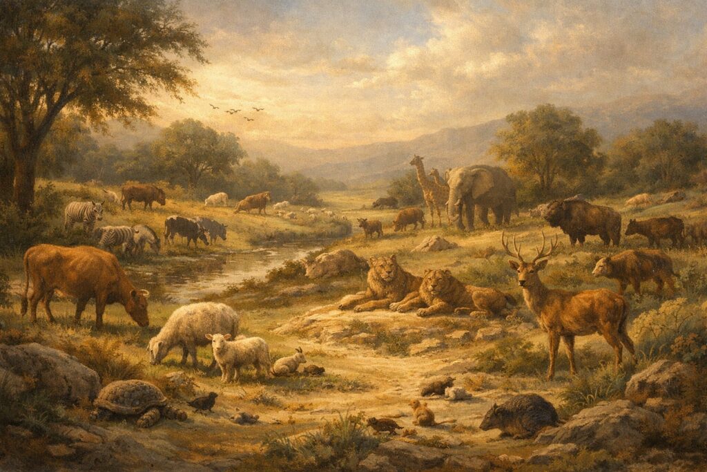 On the sixth day, animals populate the land.